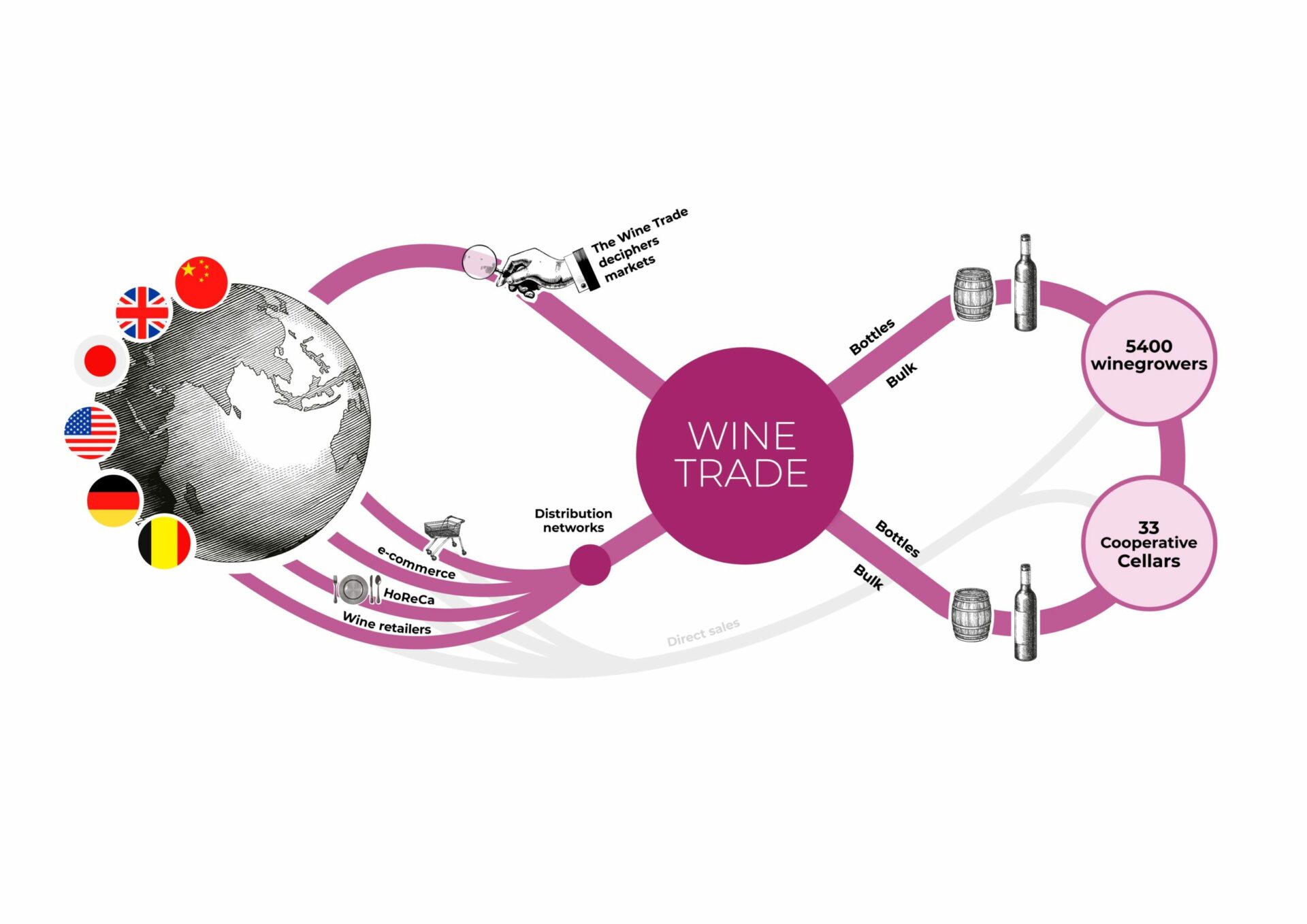We are corporate managers who bear the risks of business alongside winegrowers and we supply distribution networks worldwide.