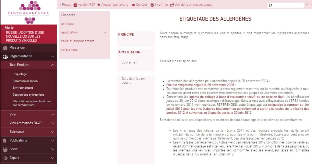 Access to a database of more than 200 regulatory fact sheets listed per subject, explaining regulations for export, European and French, for “wines and spirits”, in more than 170 countries  (www.Netvs.org).